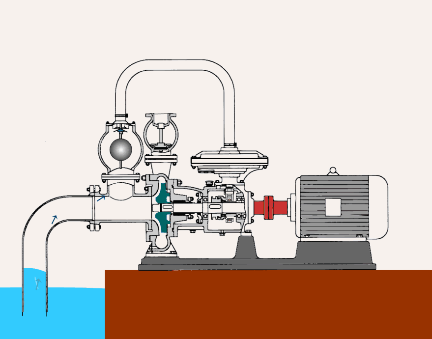 常用的自吸泵是指外混式離心自吸泵,根據葉輪旋轉使液體流向渦殼,從而使泵體形成真空,這樣自吸泵的單向閥就會打開,把液體從進口吸進來,并通過葉輪流道把液體輸送出去,這是自吸泵的工作原理。